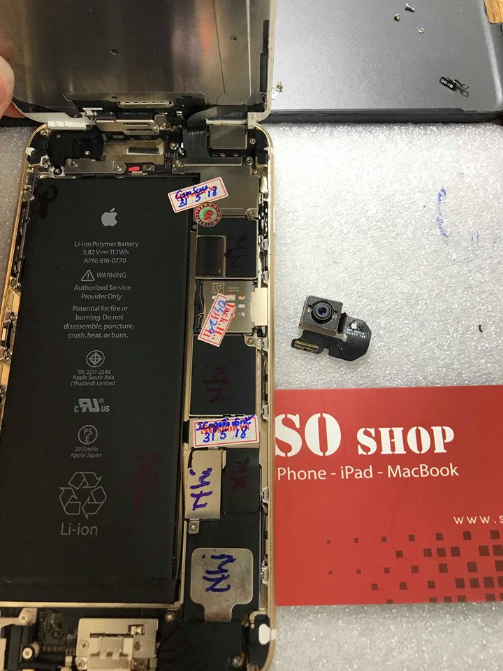 - Nếu quý khách chấp nhận sử dụng dịch vụ của SOshop, kỹ thuật viên sẽ nhận máy và sửa chữa, thay camera sau iPhone 6 plus. Khách hàng ngồi xem trực tiếp kỹ thuật của SOshop làm việc.