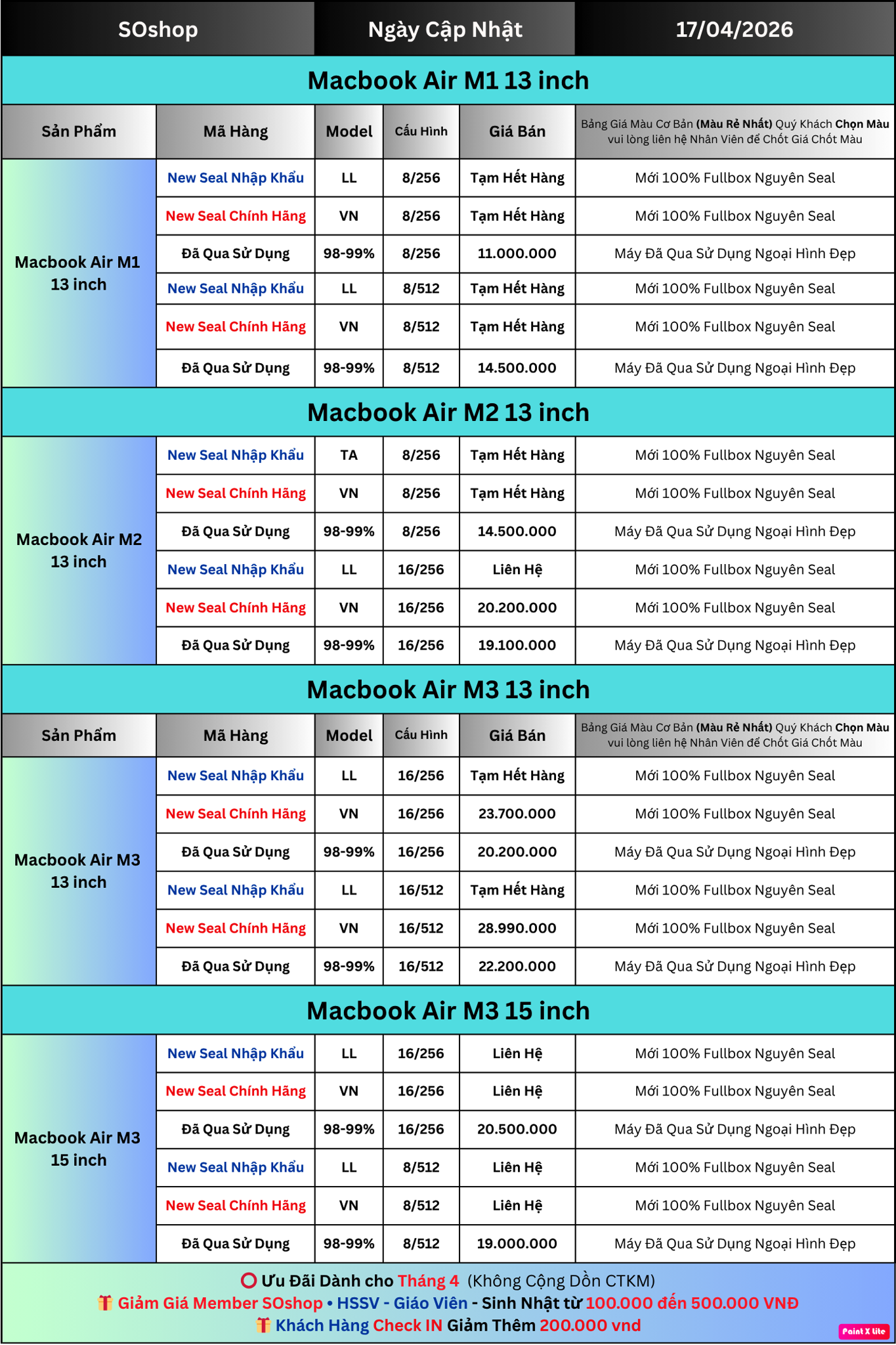3. Giá Macbook Air M1 - M2 - M3